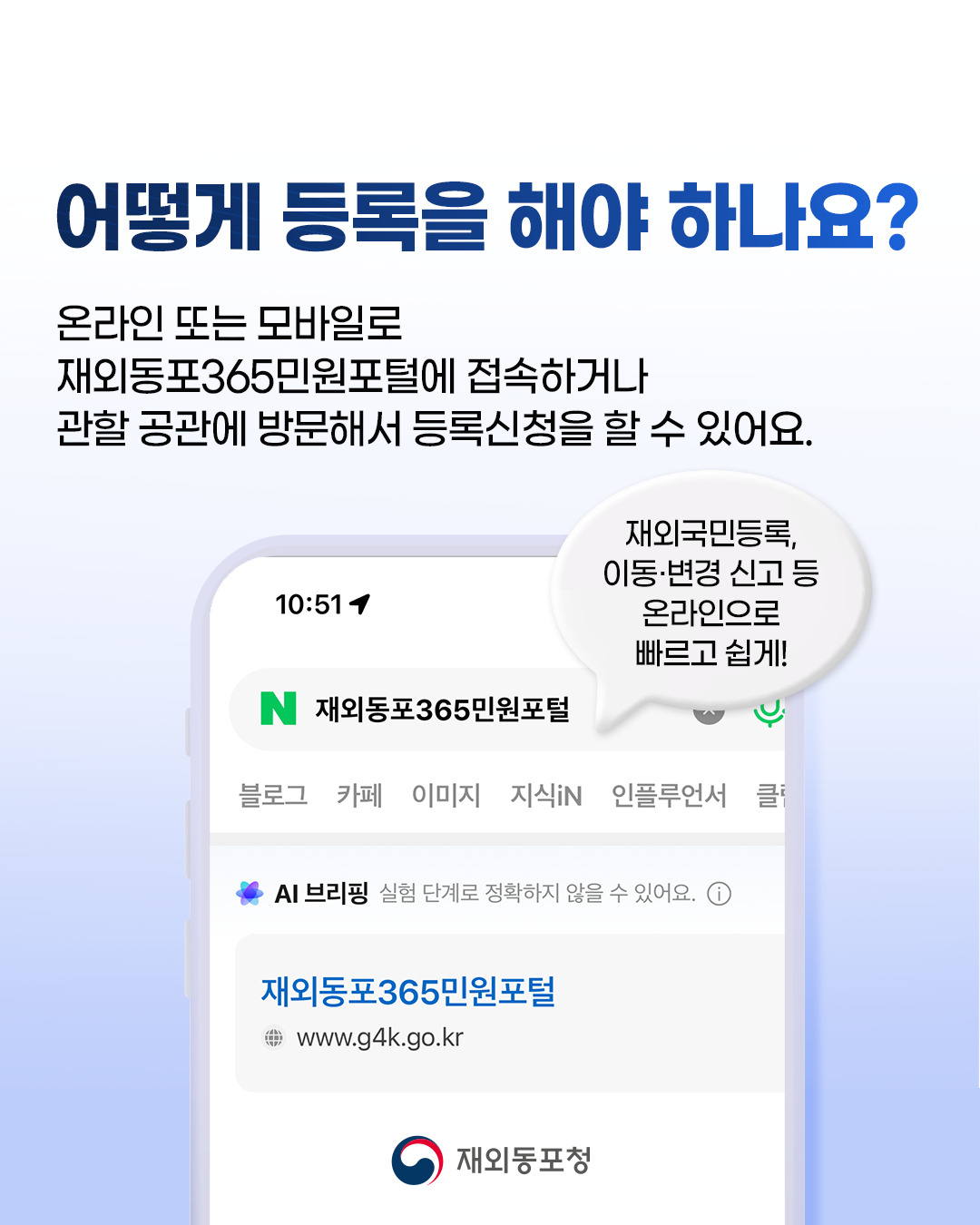 대한민국 국민은 재외국민등록을 해야 합니다.
