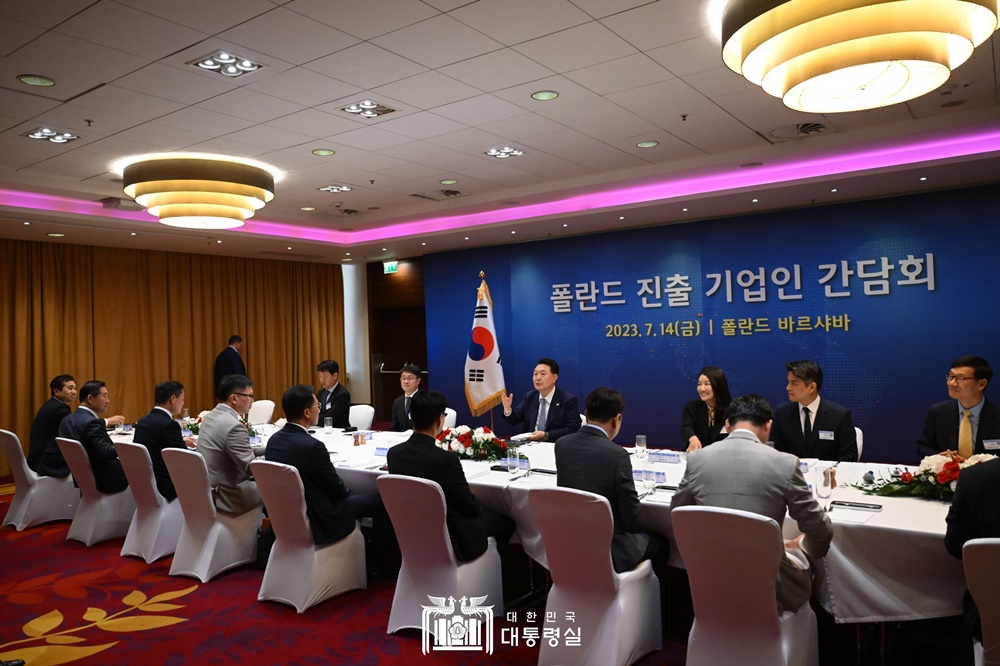 폴란드를 공식 방문 중인 윤석열 대통령은 현지시각 7월 14일(금) 바르샤뱌 시내 호텔에서 현지 진출 기업인들과 오찬 간담회를 가졌습니다.